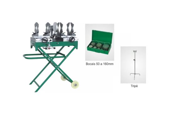 Acompanha bocais 50mm a 160mm e tripé.